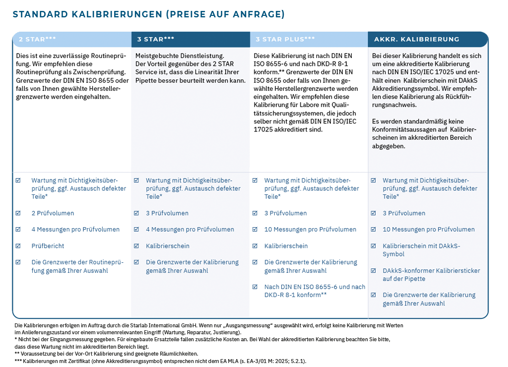 Die präzise und einwandfreie Funktion von Pipetten und Dispensern ist für Ihren Laboralltag unersetzlich. Um unseren Qualitätsansprüchen gerecht zu werden, haben wir unser Kalibierlabor der Starlab International GmbH gemäß DIN EN ISO/IEC 17025 durch die Deutsche Akkreditierungsstelle (DAkkS) akkreditieren lassen. Somit können Sie sicher sein, dass unser Pipettenservice den höchsten Standards entspricht.