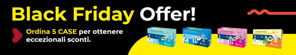 StarGuard® COMFORTOpzioni disponibili Materiale: Nitrile Confezione: 2.500 Pezzi (10 Scatole × 250 Pezzi)dal 224,00 € invece di 224,00 € Il prezzo è quello di listino. [*IVA e spedizione esclusi]
